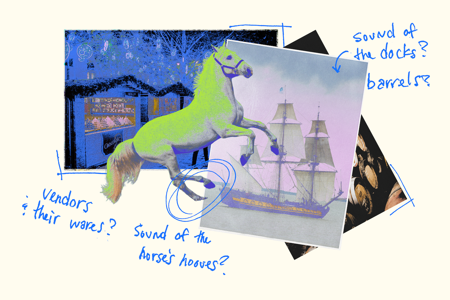 “What is the sound of the horse's hooves as they go down the cobblestones?” asks Whaley. “What is the sound of the vendors at the market advertising their wares? What is the sound at the docks as the ships are coming in, and crates and barrels are being unloaded? What are the conversations that are spilling out of the taverns and coffee houses and private homes? What are the songs that people are singing?”